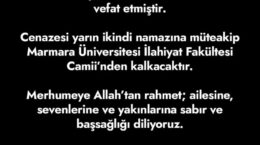 Yönetim Kurulu Üyemiz Yavuz Selim Bozar’ın kıymetli annesi Sinem Bozar vefat etmiştir. Merhumeye Allah’tan rahmet; ailesine, sevenlerine ve yakınlarına sabır ve başsağlığı diliyoruz.