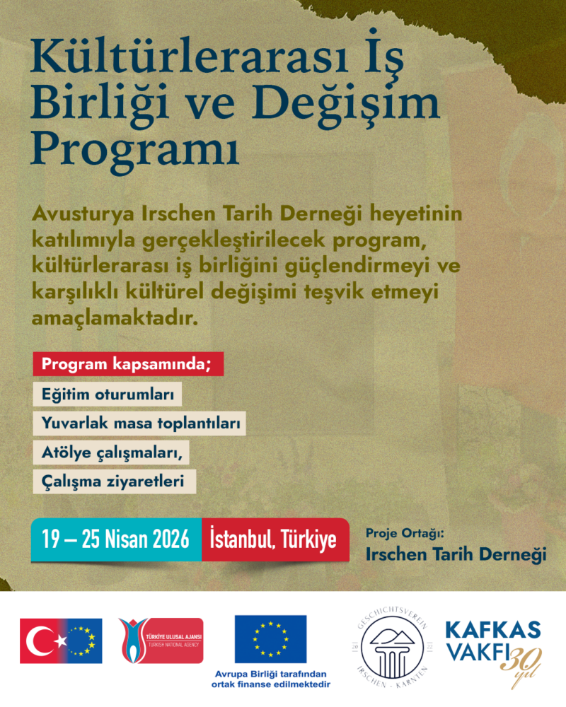 Türkiye Ulusal Ajansı destekli gençlik projeleri kapsamında Avusturya’dan Irschen Tarih Derneği heyeti İstanbul’a gelecektir. Planlanan ziyarette, kültürlerarası iş birliğini güçlendirmeyi ve karşılıklı kültürel değişimi teşvik etmeyi amaçlayan kapsamlı bir program olarak tasarlanmıştır. Bir AB projesi kapsamında davet edilen heyet için, proje gerekliliklerine uygun olarak 6 gece konaklamalı 7 günlük bir ziyaret programı öngörülmektedir.